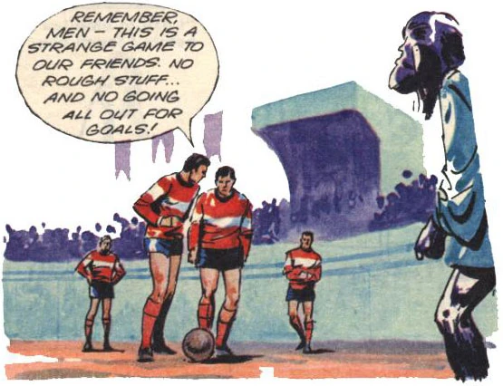 - The film Planet of the Apes was released only a year before this story was published. Similarities include intelligent simians, savage Human(oid)s, and a zoo.