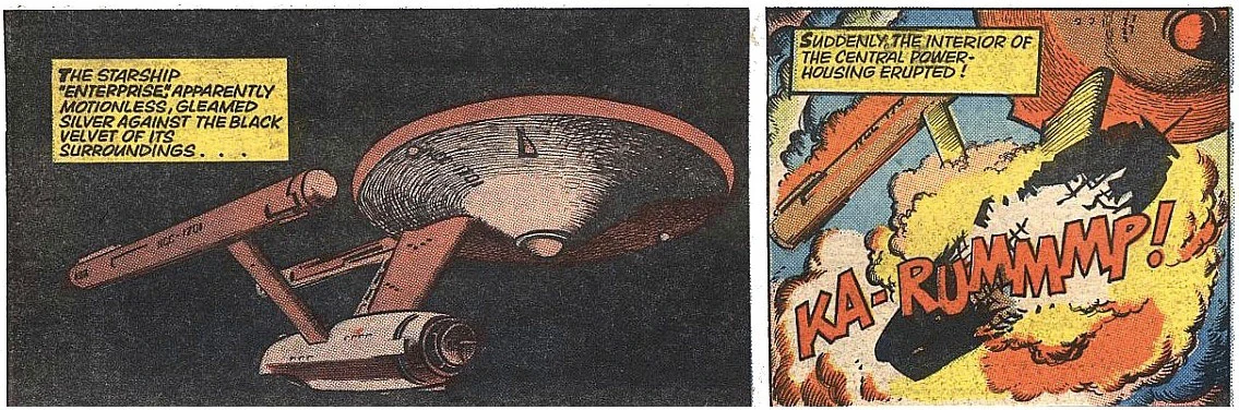 The starship Enterprise, apparently motionless, gleamed silver against the black velvet of its surroundings…