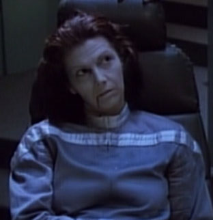 Thompson is the last name of the actress who played a dead scientist of the USS Brattain in the Star Trek: The Next Generation fourth season episode "Night Terrors". She filmed her scenes on Wednesday 9 January 1991 on Paramount Stage 16 and was listed as "dead body" on the call sheet.