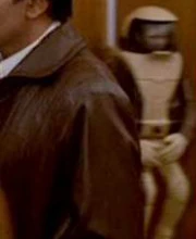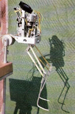After its use in The Search for Spock, the miniature was stored away on the Paramount Pictures lot and largely forgotten about, until Probert and Rick Sternbach rediscovered it. As the latter remembered, "If I recall correctly, when Andy was painting the head to look like himself, the rest of the suit hardshell was the orange color (early 1987?). I think we found the thing in a box in a storage room in the art department shortly after Andy and I commandeered the room over Stages 8/9. We had originally done some work in another office on the west side of the lot, but since the room over 8/9 was empty, we basically took it over. Anyhow, I’m wondering if the motor hardware was they way it was because the appendage moves had to be repeatable to within a very small tolerance, and the stepper motors I’ve seen are rather brutish to begin with. Steppers aren’t like "normal" spinning electric motors, for folks who aren’t familiar with them; the shafts are commanded to move in precise steps by motion control computers." [2](X)