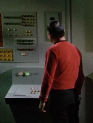 Scotty surveys a transitor unit aboard the SS Botany Bay.