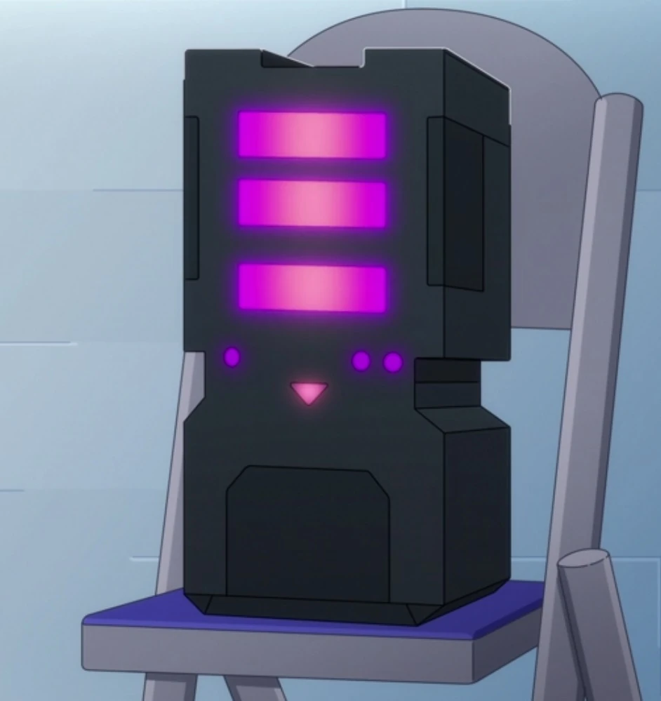 Its chassis was identical in model to 10111, also voiced by Tatasciore, though 10111 displayed a green light rather than a purple one.
