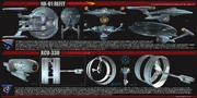 The Star Trek: Ships of the Line (2011) calendar listed in its center spread a comparison of the Enterprise (NX-01) and the Enterprise (XCV-330) and carried the following description: The XCV ENTERPRISE was a radical reinvention of warp technology based on Vulcan design principles. It proved to be 17% more efficient than Vulcan ships, but had trouble turning at high warp speed, thus making it impractical for exploration where sudden course changes would have to be made. It was considered a technological dead-end in Earth Starship Design. An updated version of the common paintings of this design is the January image in the calendar. The artwork was composed by artist Mark Rademaker.