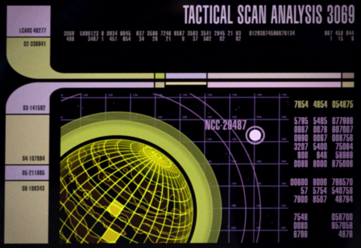 According to the Star Trek Encyclopedia, 4th ed., vol. 2, p. 202, the Raman was an Oberth-class starship with registry number NCC-59983. This registry contradicts the registry shown (NCC-29487) in the on-screen okudagram. It was also stated in the Star Trek Encyclopedia (4th ed., vol. 2, p. 202) that the Raman was named for Chandrasekhara Venkata Raman, an Indian physicist who was awarded the 1930 Nobel Prize in Physics for his work on the molecular scattering of light.