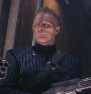 The second Enolian guard was stationed in the cockpit of the prison transport. When Kuroda Lor-ehn and the Nausicaan inmate escaped, he was shot by Kuroda as he attempted to aid the other guard. (ENT: "Canamar")