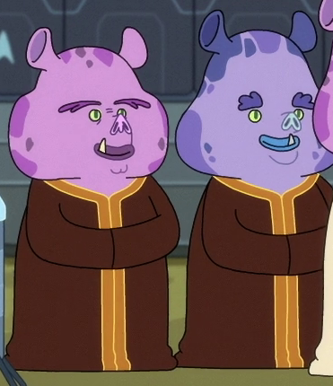 These two councilors stood with the chancellor during the initial second contact with Jack Ransom. (LD: "Second Contact") They were also present when the Cerritos arrived to perform upgrades to the existing comm system. (LD: "The Stars At Night")