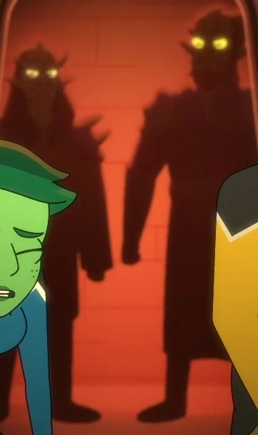 In 2380, these two guards ushered Ensigns Beckett Mariner, Brad Boimler, Sam Rutherford, and D'Vana Tendi into an elevating platform chamber in the event silo rented by Imperium Magistrate Clar. (LD: "Veritas")