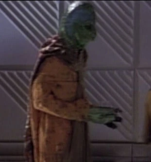 This visitor was present on Starbase Earhart in the Bonestell Recreation Facility in 2327 and watched a dom-jot game. (TNG: "Tapestry")