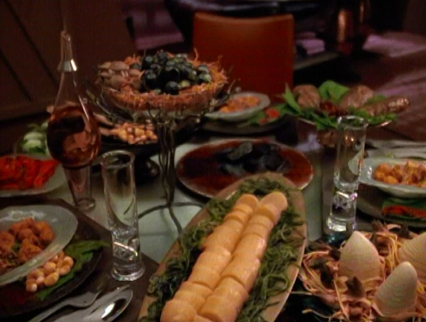 In an alternate timeline, a variety of food was offered to Tom Paris and Chakotay for dinner by Annorax. He told them that all were delicacies from extinct civilizations he erased from history. (VOY: "Year of Hell, Part II")