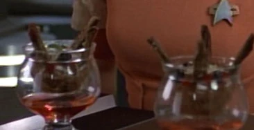 In 2382, a platter of small, snack-like dishes was seen at an area near the Risa Bar aboard the Cosmic Duchess. Lieutenant jg Brad Boimler took a bite of one of these snacks, accidentally incensing a trio of Kreetassans, as "[they] consider[ed] eating to be more intimate than mating." (LD: "The Best Exotic Nanite Hotel")