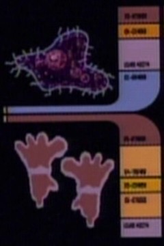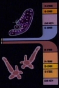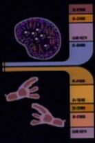 An alien lifeform was seen on a viewscreen depicting data from the USS Enterprise-D's library computer. (TNG: "The Last Outpost", "Datalore")