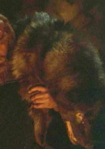 Kathryn Janeway attempted to communicate with the primate during her brief stay on the planet in 2372, claiming she sensed intelligence in it. However, Chakotay doubted it could be domesticated, Janeway first encountered the animal while sitting in the bath Chakotay made for her, and once more while collecting insect samples from her traps, it even warned Janeway about a incoming dangerous ion storm even though Janeway first thought it was looking at her insect traps (VOY: "Resolutions")