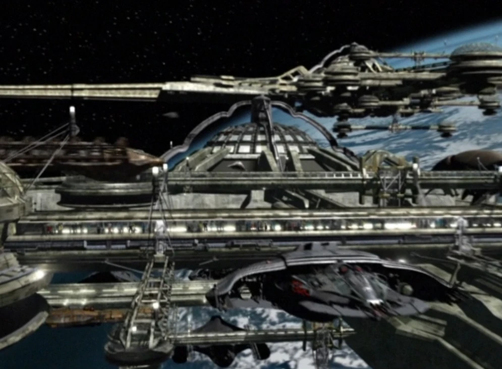 This CGI file was originally created for Star Trek: Voyager: "Survival Instinct". It was recolored and modified for use as the Ledosian spaceport in VOY: "Natural Law".
