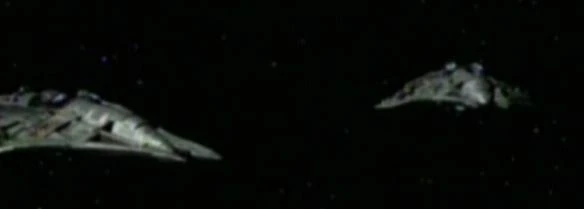 The model would later be reused as a different style of Talaxian ship in "Homestead", apparently having been combined with the forward nose section of the Bajoran interceptor. [6]