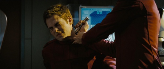 In the alternate reality, McCoy gave Kirk a vaccine for a viral infection spread by Melvaran mud fleas, to which Kirk had a bad reaction resulting in swollen hands and numb tongue. Those symptoms hindered him when he attempted to warn Uhura about a possible Romulan attack, when Nero attacked Rura Penthe in 2258. (Star Trek)