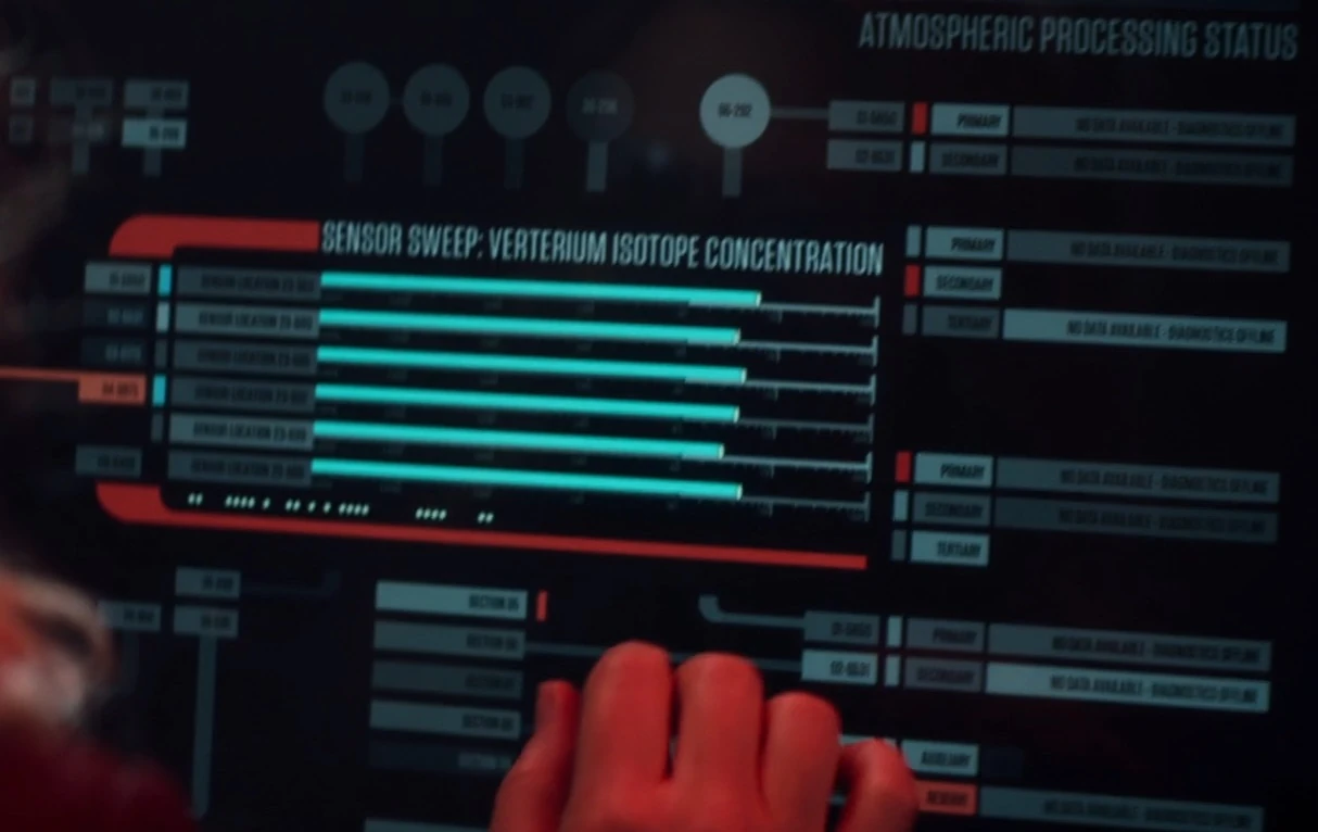 Under normal circumstances, verterium gas was monitored by atmospheric diagnostics aboard Federation starships, and its isotopic concentration could be measured by a standard sensor sweep. (PIC: "Seventeen Seconds")