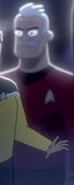 - A later hallucination experienced by Rutherford depicted Shaxs in the aforementioned forms, as well as other means that franchise characters returned, including a mirror Shaxs dressed as James T. Kirk coupled with an earlier reference to the mirror universe (TOS: "Mirror, Mirror", et al), Shaxs as a Borg drone (TNG: "The Best of Both Worlds", et al), Shaxs emerging from a Dyson sphere a la Montgomery Scott's return (TNG: "Relics"), Shaxs dressed as Neelix ("Mortal Coil"), as James Moriarty (TNG: "Elementary, Dear Data", "Ship In A Bottle"), Shaxs wearing a Star Trek: Enterprise-era Starfleet operations division uniform with lieutenant rank pips, and a Star Trek: The Original Series-era Starfleet operations division uniform with lieutenant stripes.