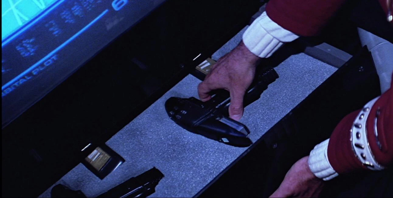 In 2287, Captain James T. Kirk accessed the weapons locker aboard the shuttlecraft Copernicus. (Star Trek V: The Final Frontier)