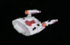 The script (dated 9 July 1973) describes it thus: "The one-man ship hangs motionless in space. Its rear section has been torn away and is bent completely out of position. In addition, numerous holes are evident in the vessel."