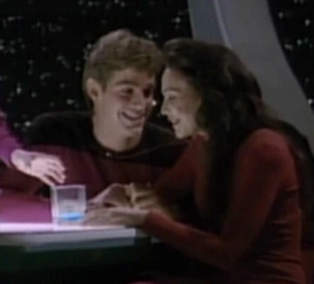 He was having a drink with Ensigns Darien Wallace and Bennett in Ten Forward when he was made aware by Bennett that a woman was looking at him. This was watched by Guinan and Lal; the El-Aurian explained to the android that this was called flirting. A short while later, he was sitting at a table with the woman and kissing her, meanwhile being served drinks by Lal. (TNG: "The Offspring")