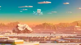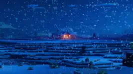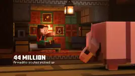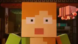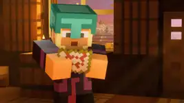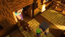 As snow falls in a snowy plains, an allay flies by a rabbit and over near a cabin, where the heroes of Minecraft are staying. As Steve and Alex rest by a fireplace, Sunny falls asleep by a window. Suddenly, Efe barges into the room, an armadillo sneaking inside. Efe places a map into an item frame beside many collectibles, such as a sniffer egg, before Kai appears and begins breaking apart the floor. Zuri rests on top of a blast furnace, before Noor drops several items into a hopper.