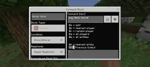- In Bedrock Edition, when typing a command in command block, autocompletion is provided without syntax hint.