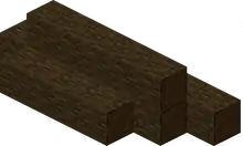 In Bedrock Edition, pillager outposts generate with foundations similar to that of a woodland mansion: watchtowers use cobblestone, birch planks, and dark oak logs as their foundation; tents and cages generate dark oak planks as their foundation; log piles use horizontal dark oak logs as their foundation; and targets generate cobblestone as a foundation.