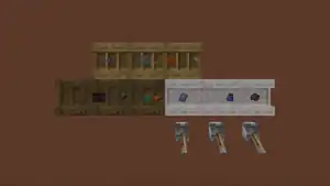 | A redstone comparator adjacent to a shelf now outputs a signal indicating which slots of the shelf contain items. | |||||||