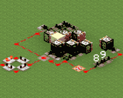 1. First, make a structure of command blocks, 3 blocks tall. Break the block in the middle, and place another command block adjacent to the space between the two command blocks. Photo shown at bottom of page.