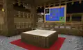 Contraption Craft-Off is Garret's minigame, where teams craft machines to eventually trap their losing opponent in a cage by using them in a bigger construction. Each team has its own enclosed room with shelves. Players need to pick up the appropriate gear on shelves using right mouse button and place it on the crafting table grid according to a board above the grid. The first team to reach 8 points for 8 needed machines for the cage trap wins, even though recipes seem to repeat often and generate randomly. In singleplayer, the same zombified piglin gets trapped if the player wins despite not playing in the unoccupied field in the game and points are still random.