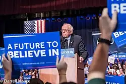 Although Clinton was considered the frontrunner from the get-go, Vermont senator (and self-described democratic socialist) Bernie Sanders jumped into the race with a platform advocating for universal healthcare and lambasting longstanding economic inequality.[56] His anti-establishment campaign won him major support from voters under 30 years old,[57] and powered his momentum against Clinton to the point where the press started talking about "the Summer of Bernie."[58] Sanders attacked Clinton for taking money from Super-PACs while both candidates were pledging support for campaign finance reform,[59] but his campaign wasn't completely the "underdog" bid he described it as. Riding a wave of small dollar donations, Sanders impressively outspent Clinton by 50% across many states in early 2016.[60]