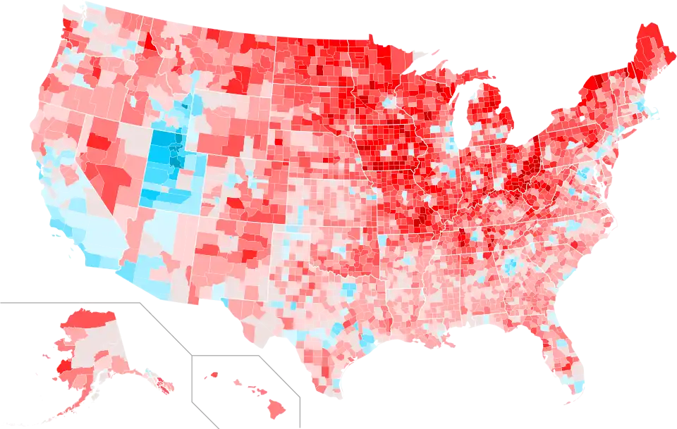 The underlying causes behind the Rust Belt's decline were quite a bit more complex than that,[106] and American manufacturing had and has little chance of returning to the heights of decades past, but Trump's attacks on free trade resonated strongly with Rust Belt voters. The vitriol Trump launched at the concept of globalization proved extremely successful at winning over disaffected Democrats in the region who felt left behind by the Obama administration's commitment to free trade agreements.[107] For example, free trade was extremely unpopular in Ohio, where it was blamed for years of manufacturing job losses.[108]