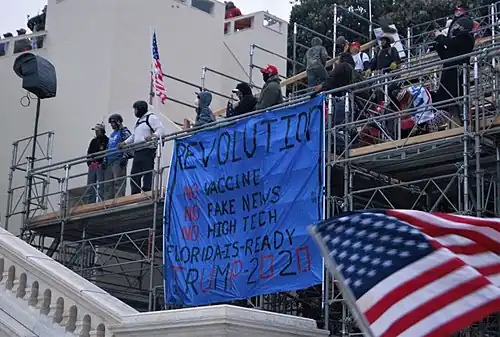 The 2021 United States coup attempt, also known as the 2021 storming of the United States Capitol, the 2021 insurrection at the United States Capitol, the 2021 United States Capitol attack, the 2021 U.S. Capitol riot, January 6, J6, and 1/6, was a failed putsch and far right domestic terrorist attack that took place at Capitol Hill on January 6, 2021. Taking place two months after the 2020 U.S. presidential election, it was the culmination of Donald Trump's first term, and marked a crescendo in right-wing populism's creeping influence on American society and the culture war between Democrats and Republicans, all while kickstarting a new era of tension between the parties.