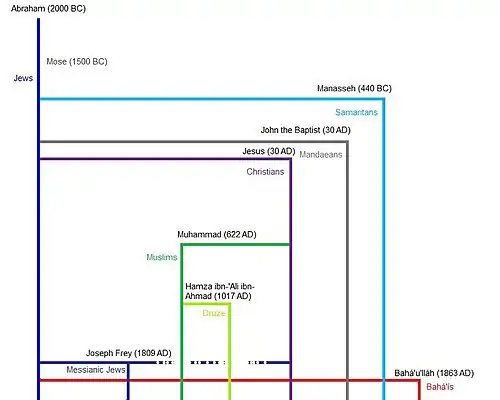 The fundamental prophets of these three branches are, in chronological order, Moses, Jesus, and Mohammed.