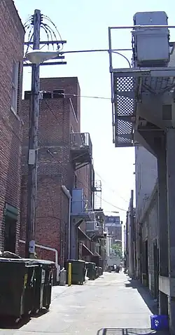 Back alleys are filthy, narrow roads which run through the middle of city blocks behind businesses, where deliveries are made and garbage trucks pick up their trash. The term back alley may also be used in a metaphorical sense to describe a place where people go to obtain things that are either illegal or otherwise prohibited as a result of moral panic.