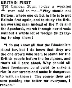 Interestingly, Britain First tried to register under the name of "Vote British" in the London Mayoral Election,[26] the same slogan openly fascist Oswald Mosley ran under for the General Elections in the late 1930s.[27]