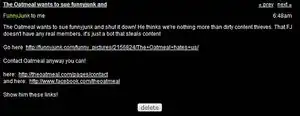 - ↑ The Oatmeal Blog - An update on the FunnyJunk situation