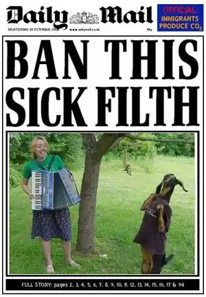 The Daily Mail (a.k.a. Hate Mail, Daily Fail, Daily Heil, Daily Moan, Crazy Mail, and so on) is a reactionary right-wing tabloid rag masquerading as a "traditional values" middle-class newspaper that is, in many ways, the second-worst of the British gutter press (only Rupert Murdoch's The Sun is worse). The Mail has been so consistently bad that Orwell called them out in Homage to Catalonia for supporting Franco.[1]:199,207 The Mail has also infamously supported Oswald Mosley and fascism.