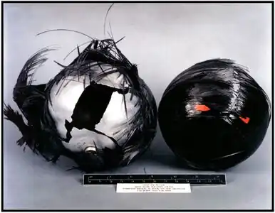 The spheres turned out to be upper stage Hydrazine propellant bladder tanks. The ones that look like giant balls of yarn, are composite overwrapped pressure vessels (COPVs), that wrap carbon fiber around the tank to increase it's tensile strength, while saving weight.