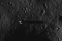Somebody, possibly "William Rutledge" (Youtube ID retiredafb) noticed this 10km long feature on the far side of the Moon back in 2007. The image is a detail from a strip taken by the Apollo 15 pan camera. The photo ID is AS15-P-9625.[9] Coordinates are 117.68°E, 18.66°S, and the nearest named craters are Diderot and Delporte.