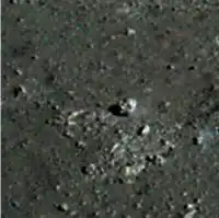 Once again, the anomalists rely on outdated, relatively low-resolution images to make their case. The high-res frame taken by the narrow angle camera of Lunar Reconnaissance Orbiter[10] shows that it's just a depression feature, cratered to the same density as the surrounding area.