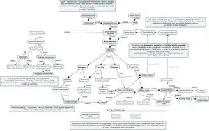 An elaborate April 2013 map of the wider Dark Enlightenment categorized by theme, made by Scharlach of Habitable Worlds.[12] It is unlikely that more than half the people on this diagram would think they belong there, but the diagram has been propagated with approval in the neoreactionary blogosphere.