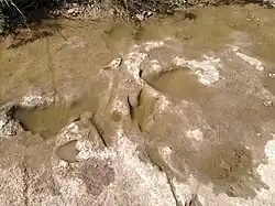 The Paluxy River tracks are a set of allegedly fossilized footprints that appear to be human, located right alongside dinosaur tracks in the Paluxy River valley, Texas. These tracks were touted by creationists for many years as proof that man had walked with dinosaurs, and hence were evidence supporting Young Earth Creationism.