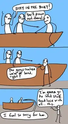 "It's just the ocean playing tricks on us. Just because it looks like we're on land, and it doesn't seem like we're moving, doesn't mean we should risk getting out."