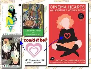 could it be? | The graphic points out hearts in two band posters, Cold Beat and Cinema Hearts, |