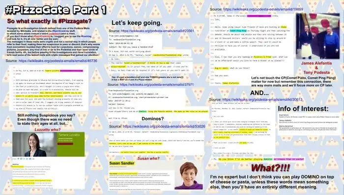 - ↑ See the Wikipedia article on Pizzagate conspiracy theory § Debunking.