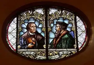 Protestant is a term primarily applied to forms of Western Christianity originating from a series of schisms with the Roman Catholic Church in the early 16th century. It is most commonly associated with religious movements led in Germany and Switzerland by Martin Luther, Huldrych Zwingli, John Calvin, and in England with the English Separatists and Dissenters. The term is also used, somewhat less strictly, to refer to churches that are members of the Anglican Communion (which split from the Catholic Church but nonetheless refers to itself as part of the Catholic Church) and American reconstructionist churches like Jehovah's Witnesses and Pentecostals, though all these arose separately from the Reformation. There are also continental and British movements that are seen as forerunners of Protestantism, but which predate Protestantism proper — such as the Waldensians and the Lollards.