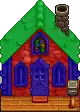 Shown below are the areas where buildings can be painted. Players can paint any combination of the "building" (red area), "trim" (blue/purple area), and/or "roof" (green area).