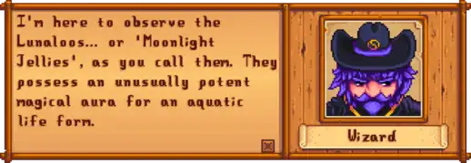 - 1.6: Villagers on the pier now have animations depicting them observing the jellies instead of staying static throughout the cutscene. Crab Pots no longer appear during the Dance of the Moonlight Jellies.