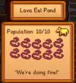A Golden Animal Cracker can also be thrown into a Fish Pond, having the same effect as giving it to a farm animal. The basket holding the fish pond's produce will turn gold and an icon of the cracker will appear in the fish pond's menu when brought up.
